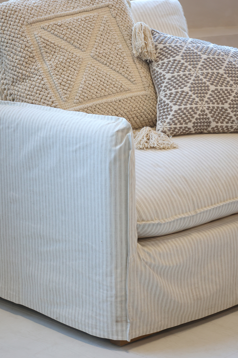 Malo stol i hør med 3 puder kombinerer komfort og et roligt, naturligt udtryk. Betrækket i hør sammen med de bløde puder giver en behagelig siddeoplevelse, der passer godt ind i lyse og afslappede indretninger.