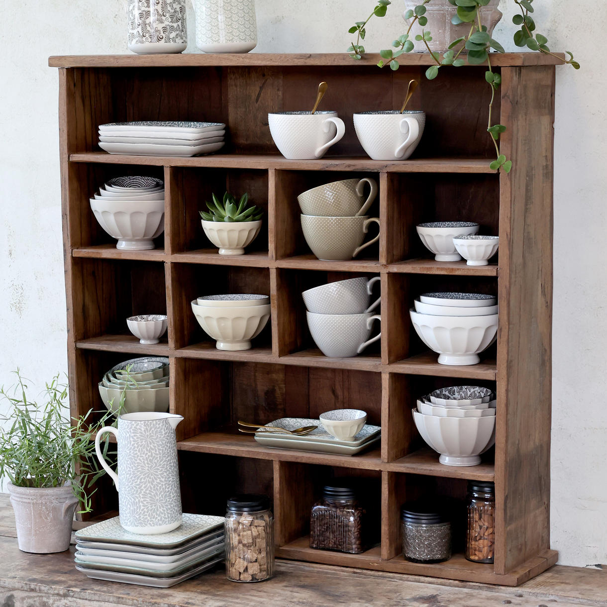 Grimaud-kollektionen er en samling at unikke værker - gamle artefakter og varer lavet af smukt patineret genbrugstræ. Og det medvirker til at tilføje både varme, sjæl og historie til hjemmet. Kollektionen inkluderer skøn dekor, samt møbler. Ens for al Grimaud er, at man kan se spor og mærker fra dets tidligere liv og formål. At give nyt liv til gamle skatte er hele filosofien bag skabelsen af Chic Antique, og Grimaud kollektionen er indbegrebet af præcis det. Bemærk venligst, at alle Grimaud varer er unikke, og ikke to er ens. Det betyder, at de kan variere i design, størrelse og type af træ.