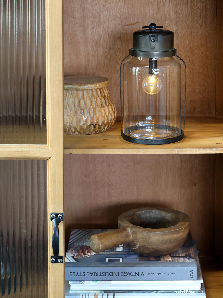 | Materiale | Grantræ, Krydsfiner, Glas, Jern |
