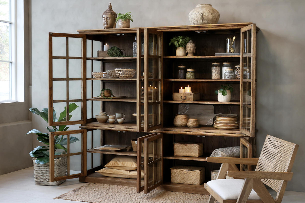 Marseille vitrineskabet fra Chic Antique er et tidløst møbel, der forener fransk landstil med smuk opbevaring. Det er håndlavet i massivt poppeltræ med en varm tone og smukke årer, hvilket giver skabet et elegant og naturligt udtryk. Med sine otte glaslåger og otte rummelige hylder tilbyder Marseille skabet rig plads til både udstilling og opbevaring af dine yndlingsting. De store glaspartier fremhæver skabets lette look, mens det robuste træ understreger den solide kvalitet. Placér vitrineskabet i spisestuen, stuen eller køkkenet, hvor det tilfører både charme og funktionalitet. Dette store skab til Chic Antiques populære serie af vitrineskabe, er skabt til at holde i generationer og bringer en klassisk skønhed ind i enhver indretning.