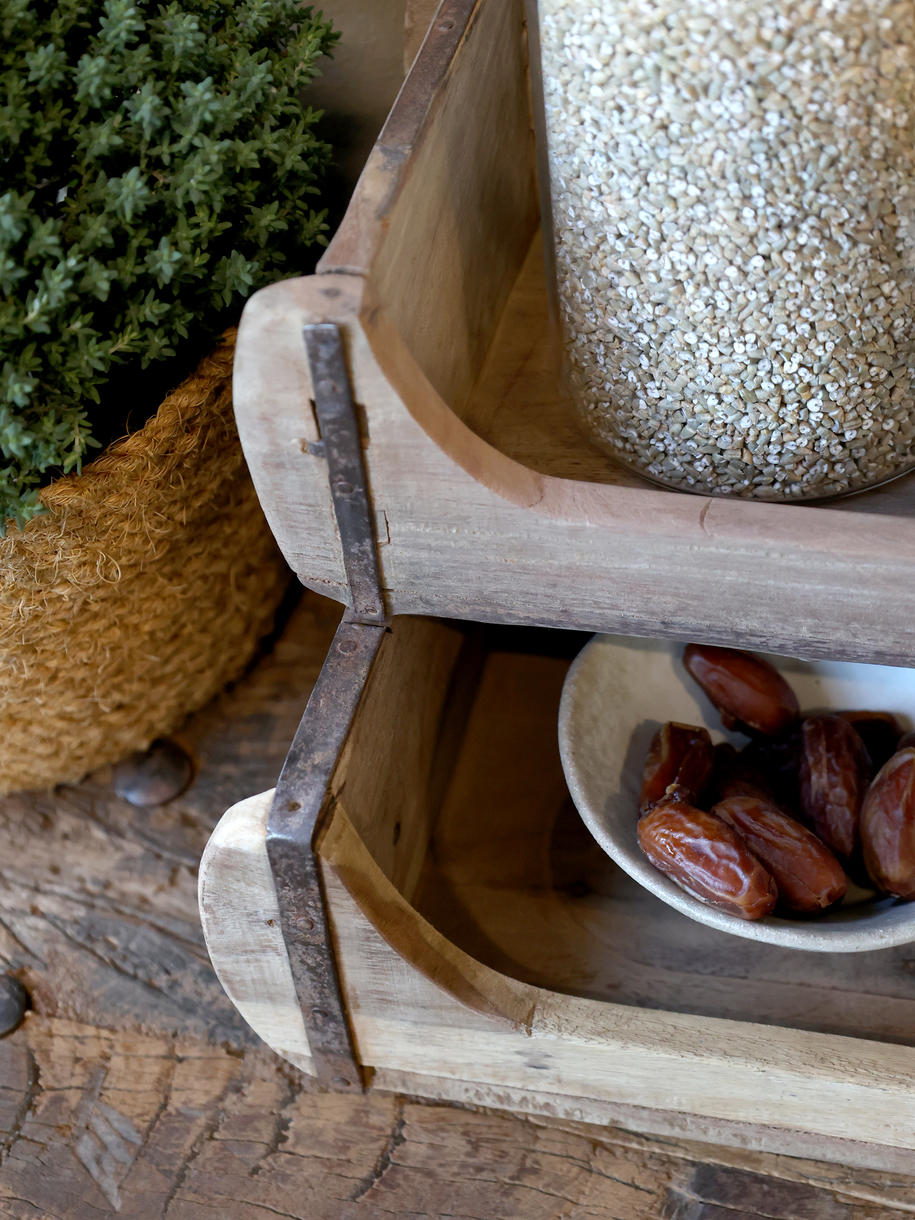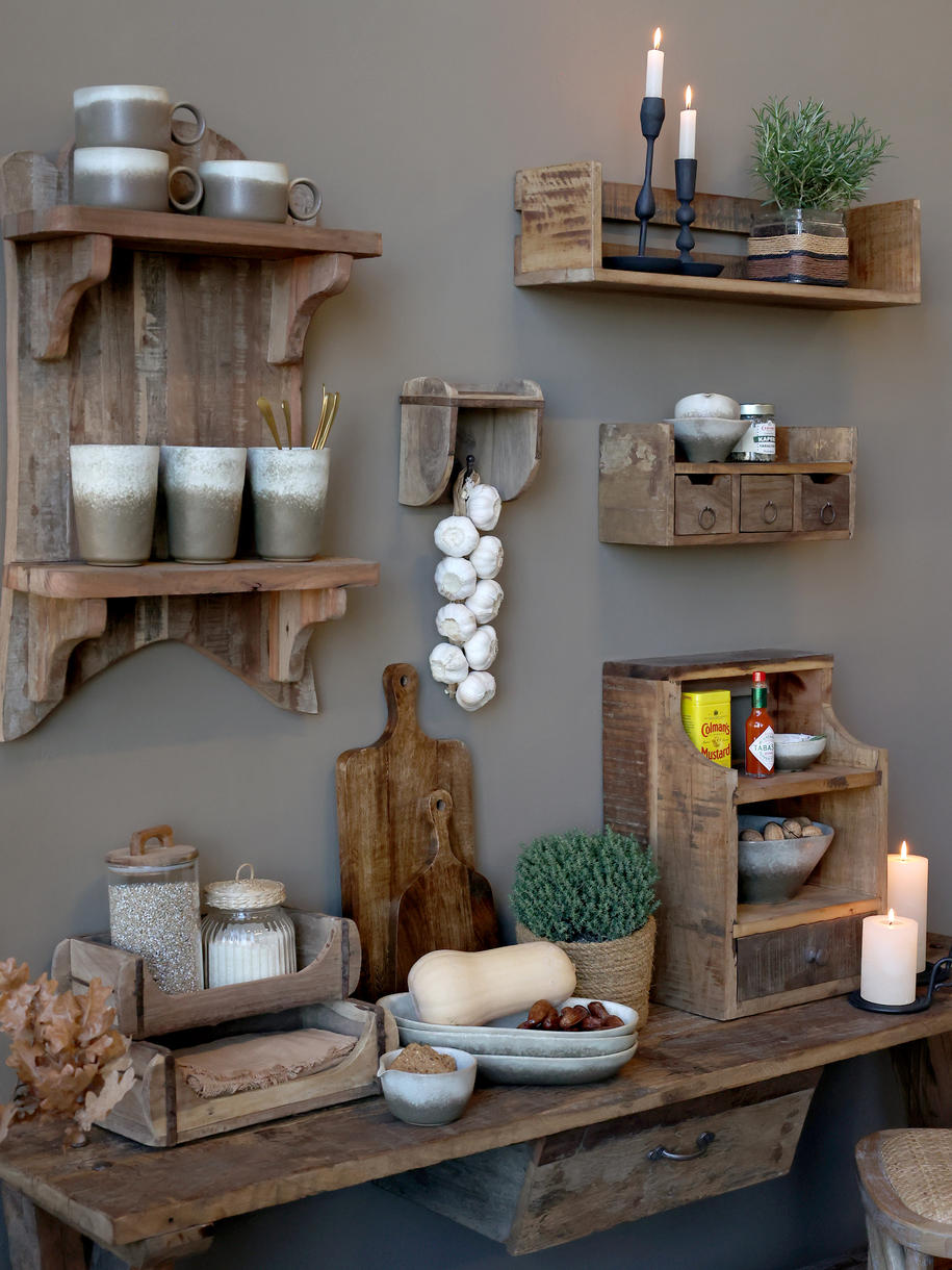 Grimaud-kollektionen er en samling at unikke værker - gamle artefakter og varer lavet af smukt patineret genbrugstræ. Og det medvirker til at tilføje både varme, sjæl og historie til hjemmet.