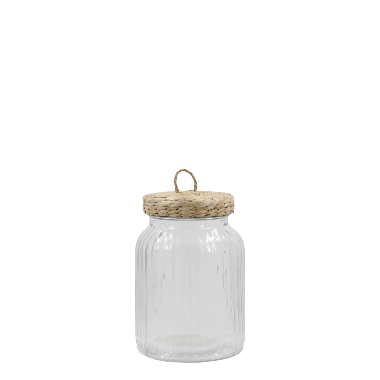 Et dekorativt opbevaringsglas med naturligt fletlåg, der tilføjer varme og personlighed til dit køkken. Kombinationen af glas og flet giver et roligt og harmonisk udtryk.