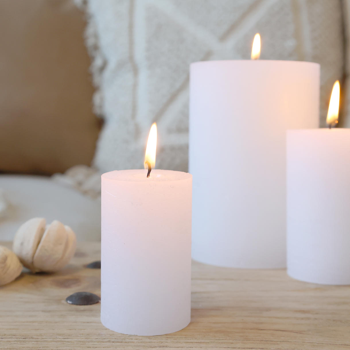 7) 15 cm i diameter, 15 cm højt, brændetid ca. 80 t.  3 væger