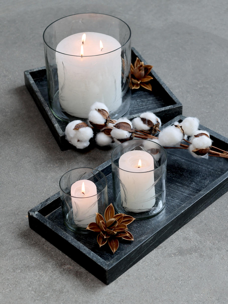 2) 7 cm i diameter, 10 cm højt, brændetid ca. 40 t.