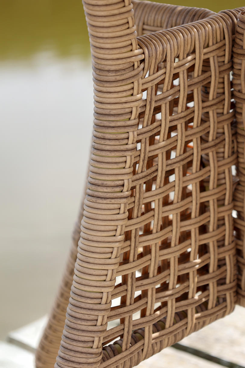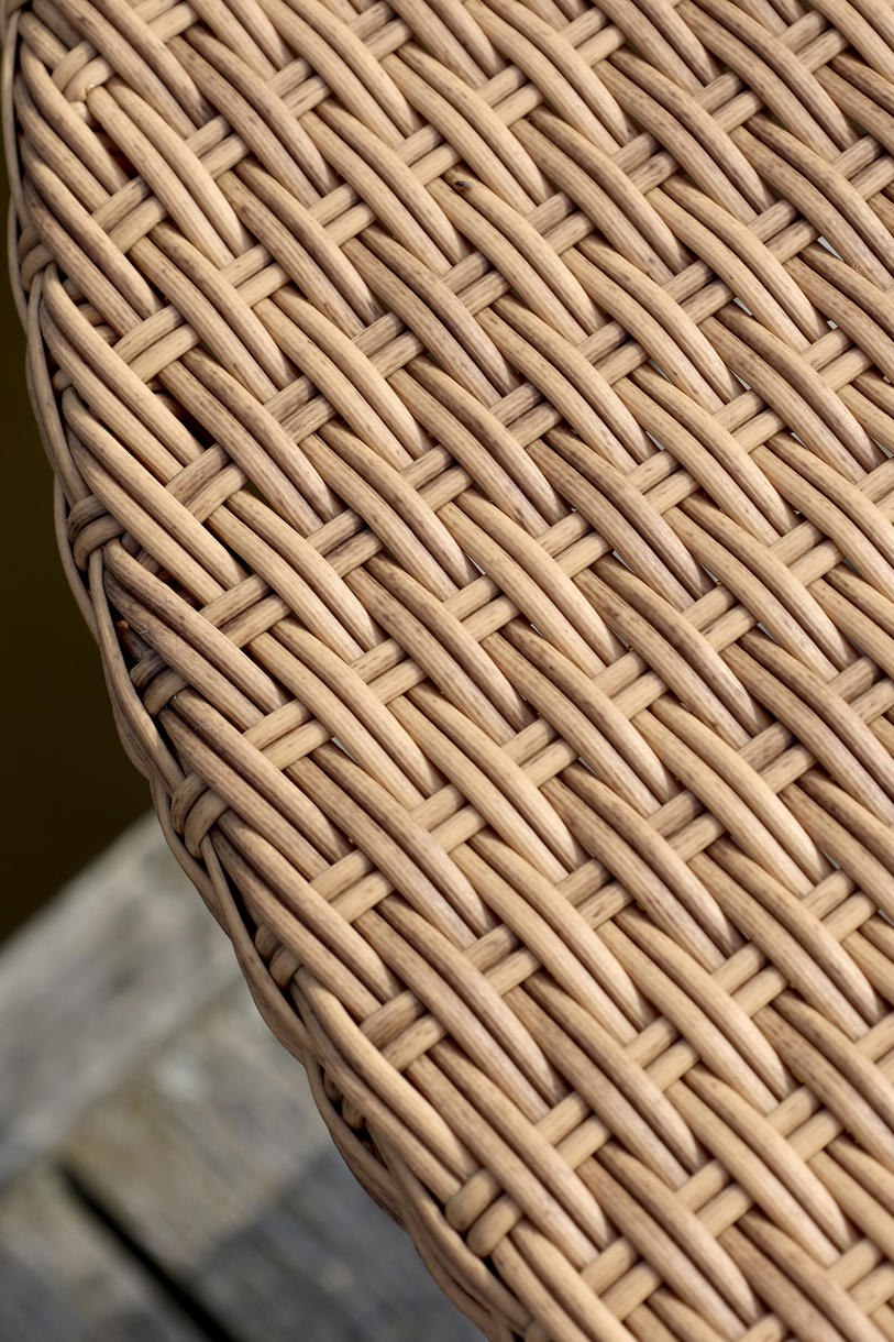 Bordet er fremstillet med en solid aluminiumsramme og beklædt med slidstærkt PE rattan, som sikrer god holdbarhed og minimal vedligeholdelse. Den lette konstruktion gør det nemt at flytte efter behov.