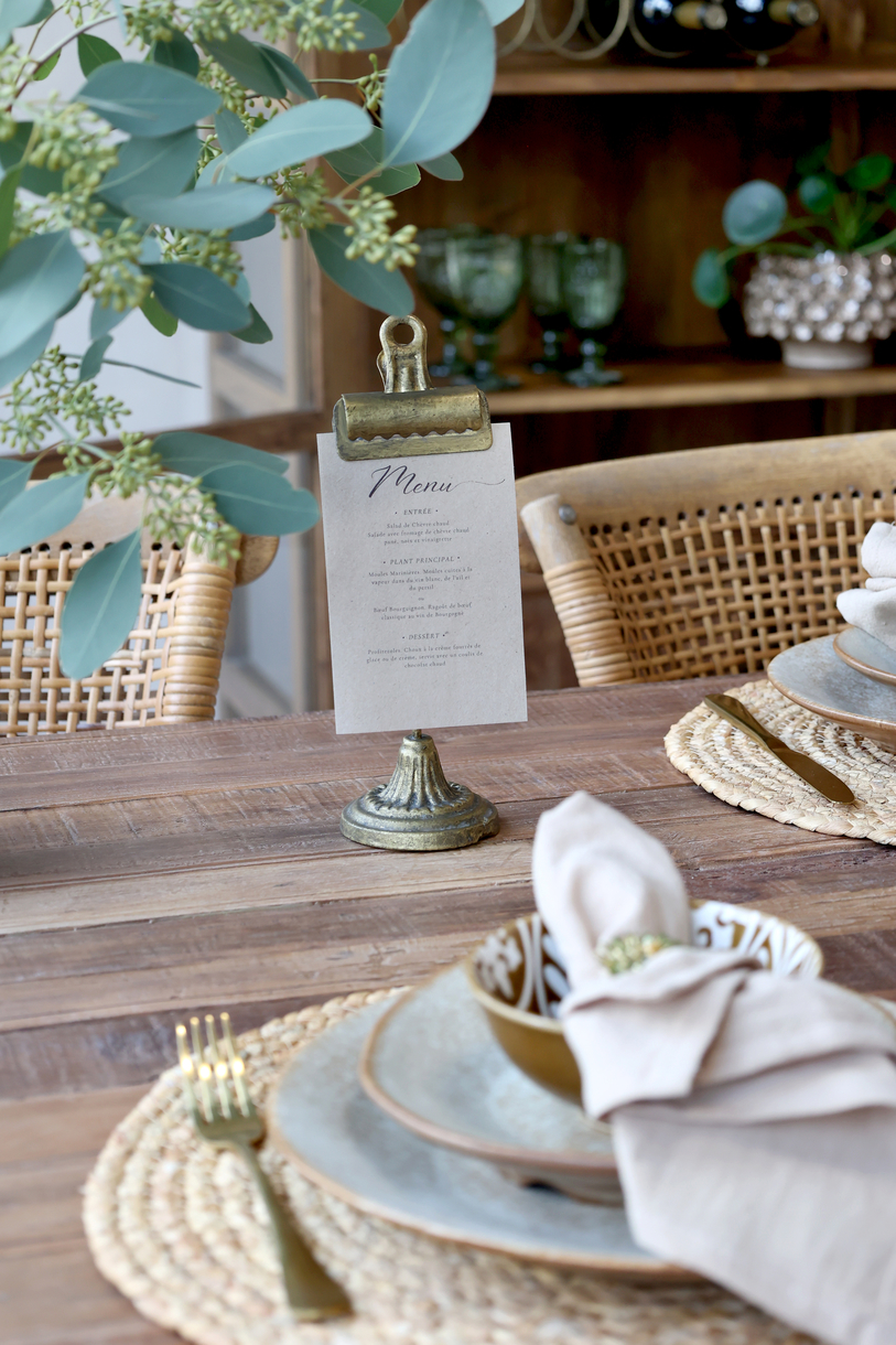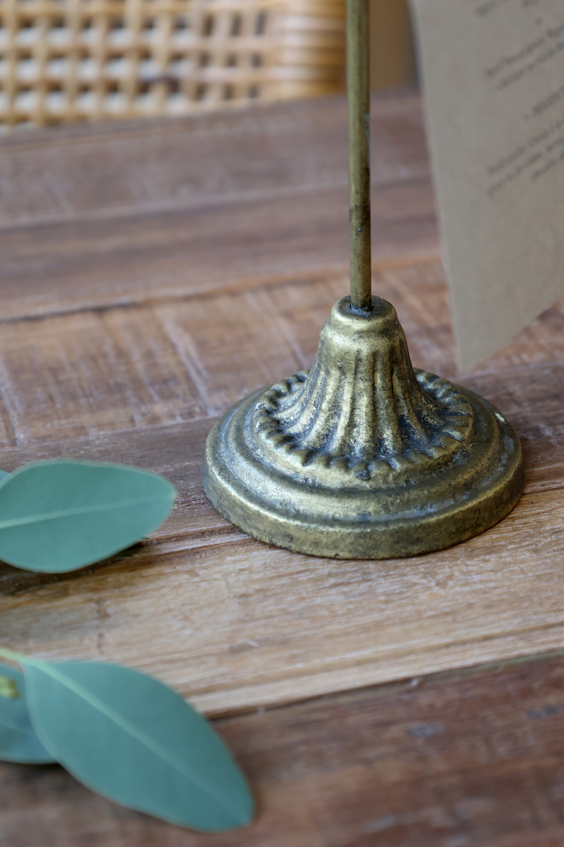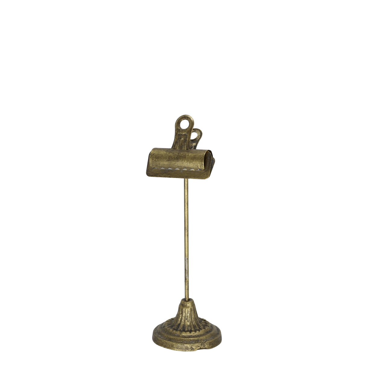 Holder med klips i antik messing, der er velegnet til bordkort, menuer eller små beskeder ved borddækning. Det enkle design gør den nem at kombinere med forskellige stilarter.