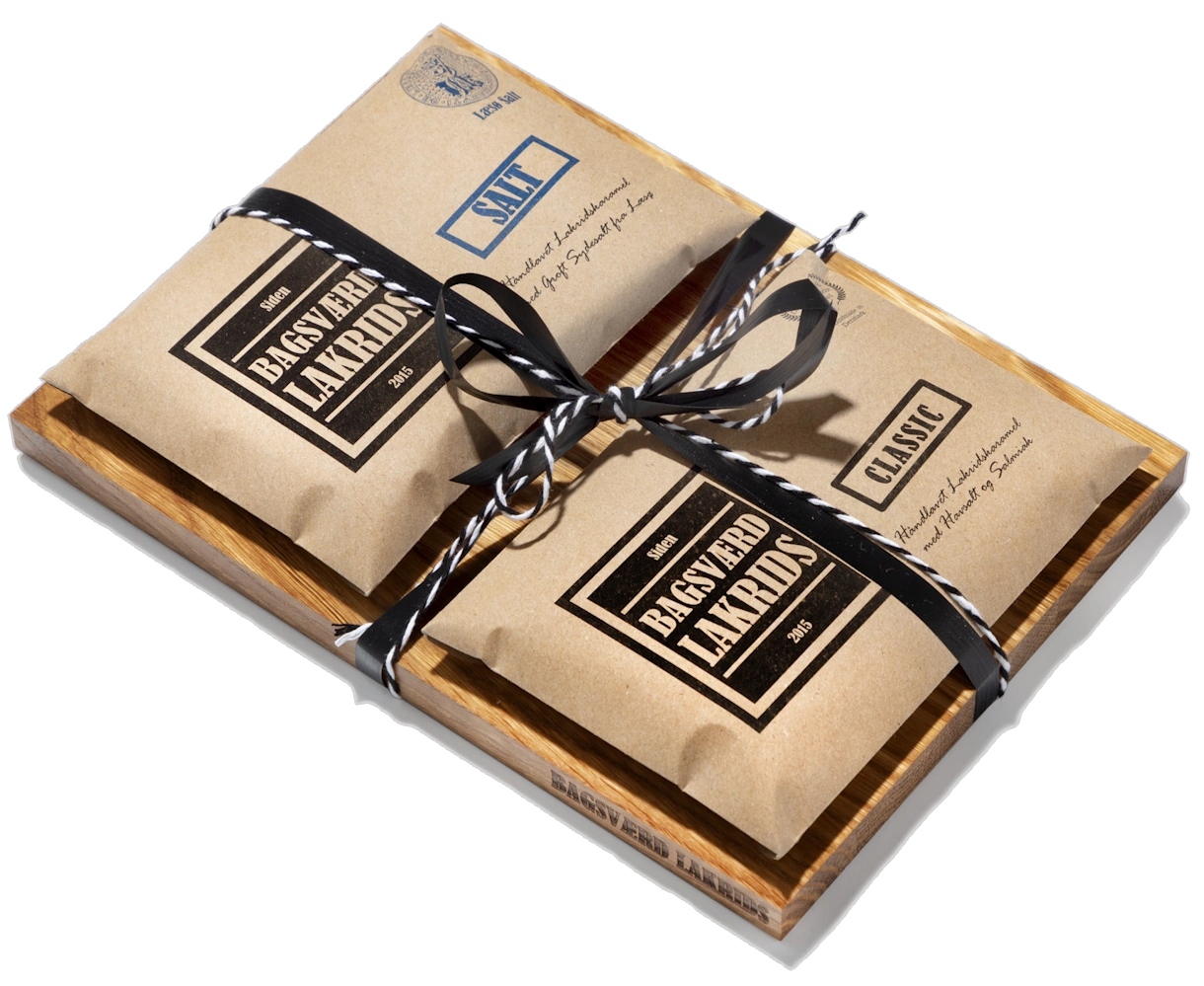Denne gavepakke indeholder vores eksklusive skærebræt i olieret eg og to plader: CLASSIC og SALT. Denne gavepakke er pakket ind i klar gavefolie og et smukt bånd og er den ideelle gaveidé til enhver lejlighed, og vil bringe glæde til enhver lakrids-elsker. |